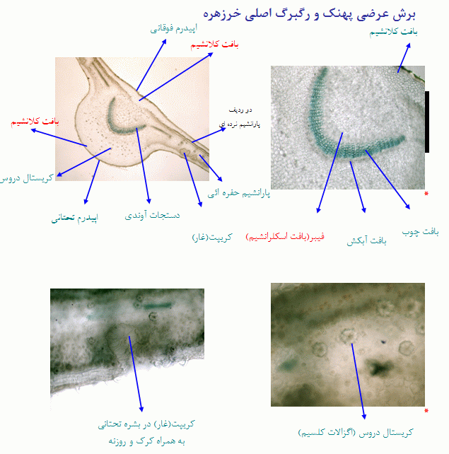 برش عرضی پهنک و رگبرگ اصلی خرزهره (